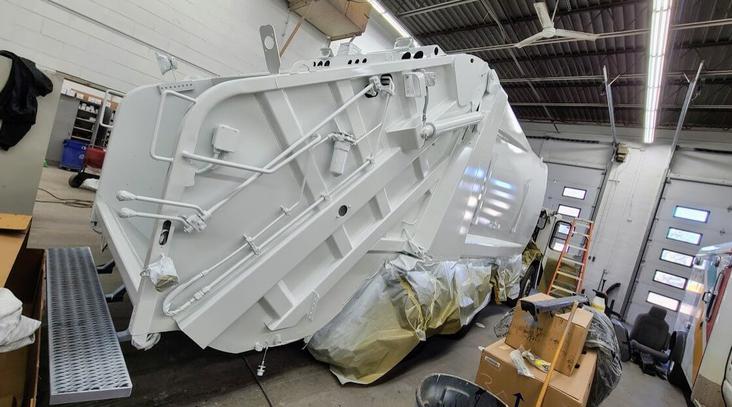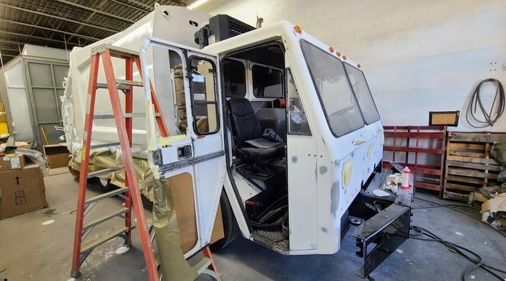 More than simple cosmetics, our job is to strip down and remove the components of these trucks and then sandblast the entire exterior to the bare metal so we can apply protective industrial coatings. It is a large job with many labor hours involved, but it is a task that our experienced auto body technicians specialize in.