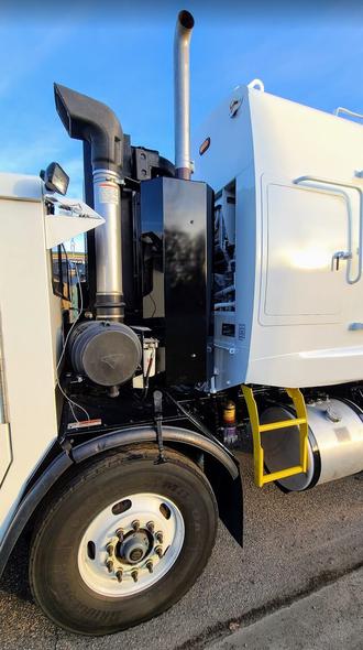 The color scheme was to paint the frame black, the body and cab white, and certain accessories yellow. This required our technicians to carefully mask off every hose, decal, sign, and other components as each color was applied.